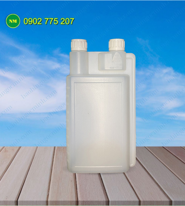 Chai nhựa 1 lít đựng nhớt hai nắp được thiết kế với dáng cao, thân chai có vạch chia thể tích rõ ràng giúp quá trình chiết rót và định lượng dầu nhớt trở nên nhanh chóng, chính xác và tiện lợi. Điểm nổi bật của mẫu chai nhựa đựng nhớt 1L này là thiết kế hai nắp vặn đối diện nhau, giúp tăng tính linh hoạt trong sử dụng và tạo sự khác biệt rõ rệt so với các dòng chai nhựa truyền thống. Đây là loại chai nhựa 1L được sử dụng phổ biến trong các ngành dầu nhớt, hóa chất, nông dược và thuốc bảo vệ thực vật.