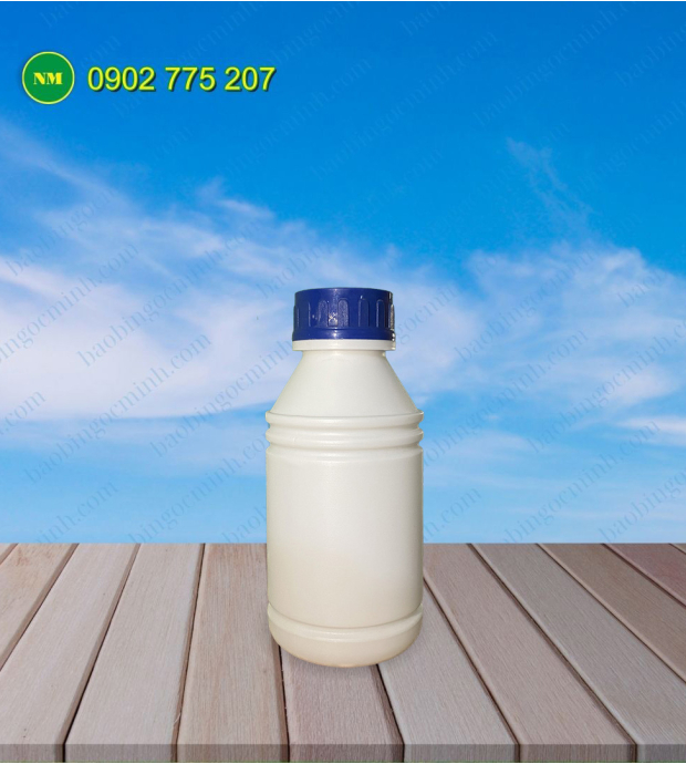 Chai nhựa HDPE 500ml được ưa chuộng trong ngành nông nghiệp, chuyên đựng thuốc BVTV. Làm từ nhựa nguyên sinh bền chắc, kháng hóa chất, thiết kế nắp vặn kín, thân chai có ngấn dễ cầm, phù hợp đóng gói công nghiệp.