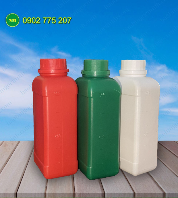 Chai nhựa HDPE 500ml hình chữ nhật của Bao Bì Ngọc Minh chính là lựa chọn lý tưởng dành cho các ngành nông dược, hóa chất, mỹ phẩm, và thực phẩm lỏng.